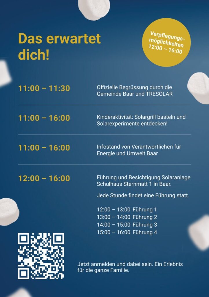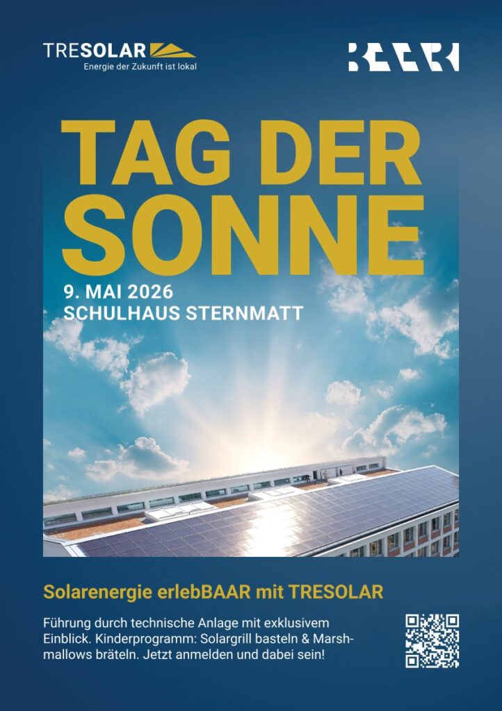 Am Samstag, 9. Mai 2026, lädt die Einwohnergemeinde Baar mit der Firma TRESOLAR zum «Tag der Sonne» beim Schulhaus Sternmatt ein.